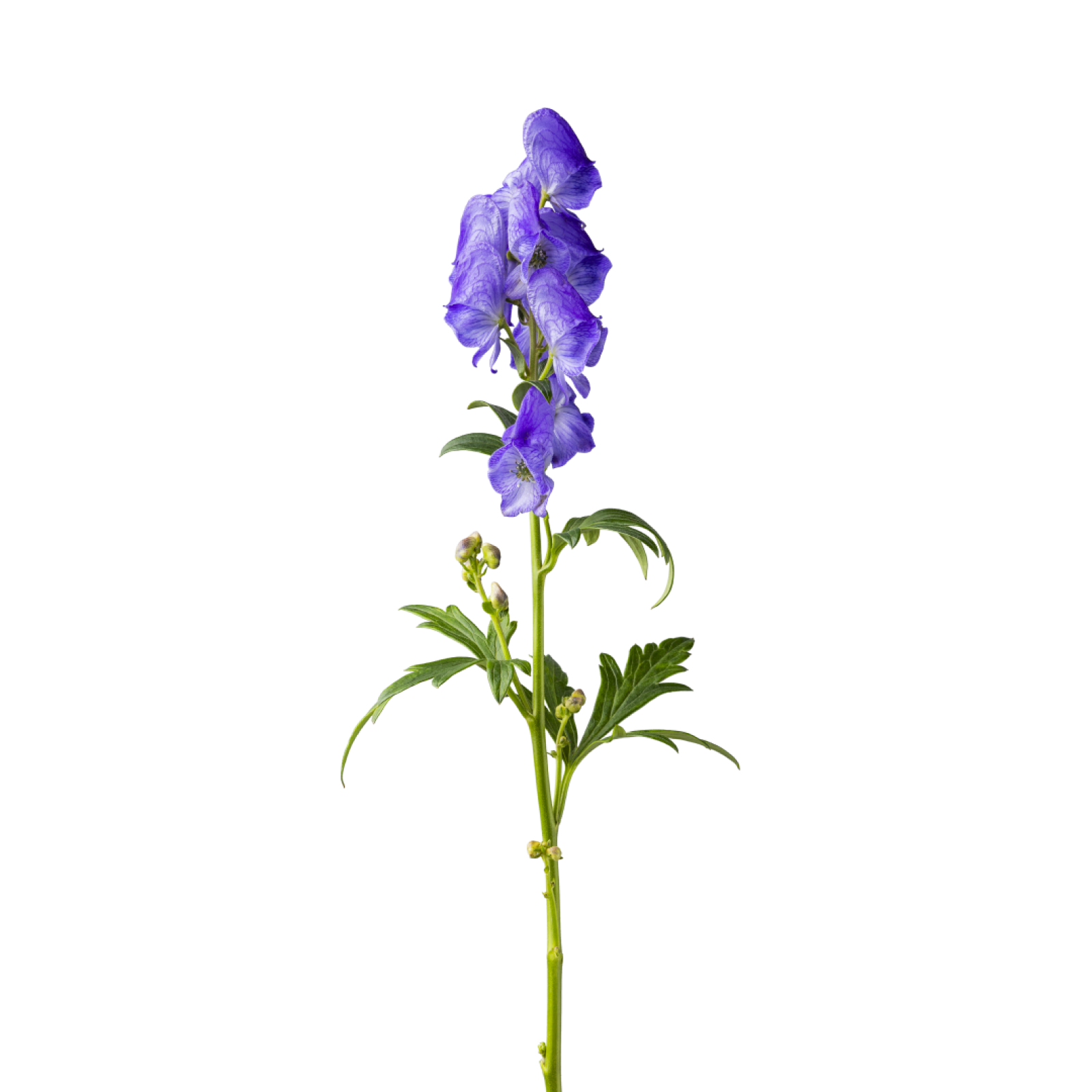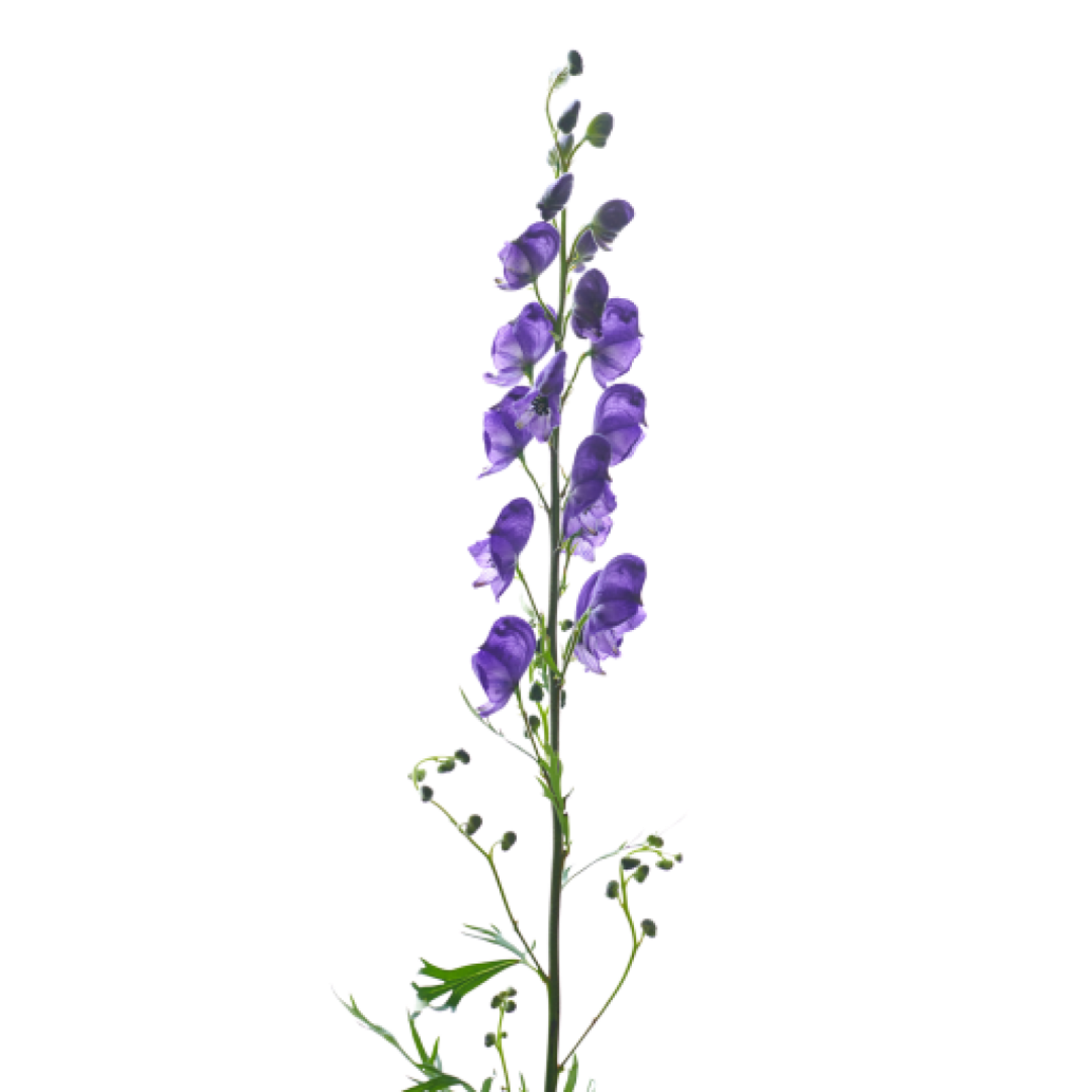 Con la sua caratteristica forma di fiore, i singoli petali hanno la forma di un cappuccio da monaco. Con i suoi splendidi colori bianco e blu/viola, l'Aconitum aggiunge un elemento potente a qualsiasi ambiente.