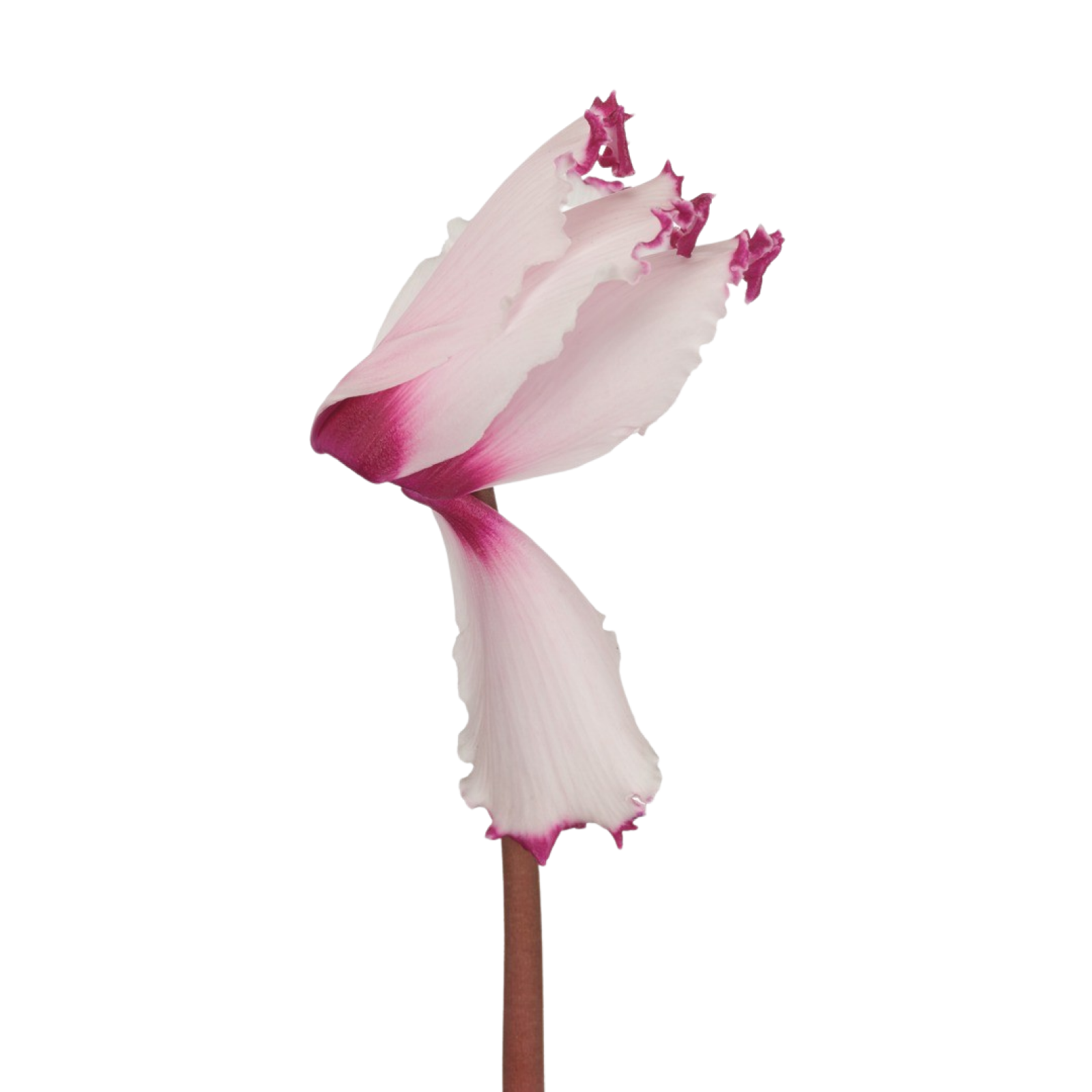 Il ciclamino è noto per i suoi delicati petali che si arricciano elegantemente verso l'alto, creando un effetto unico.