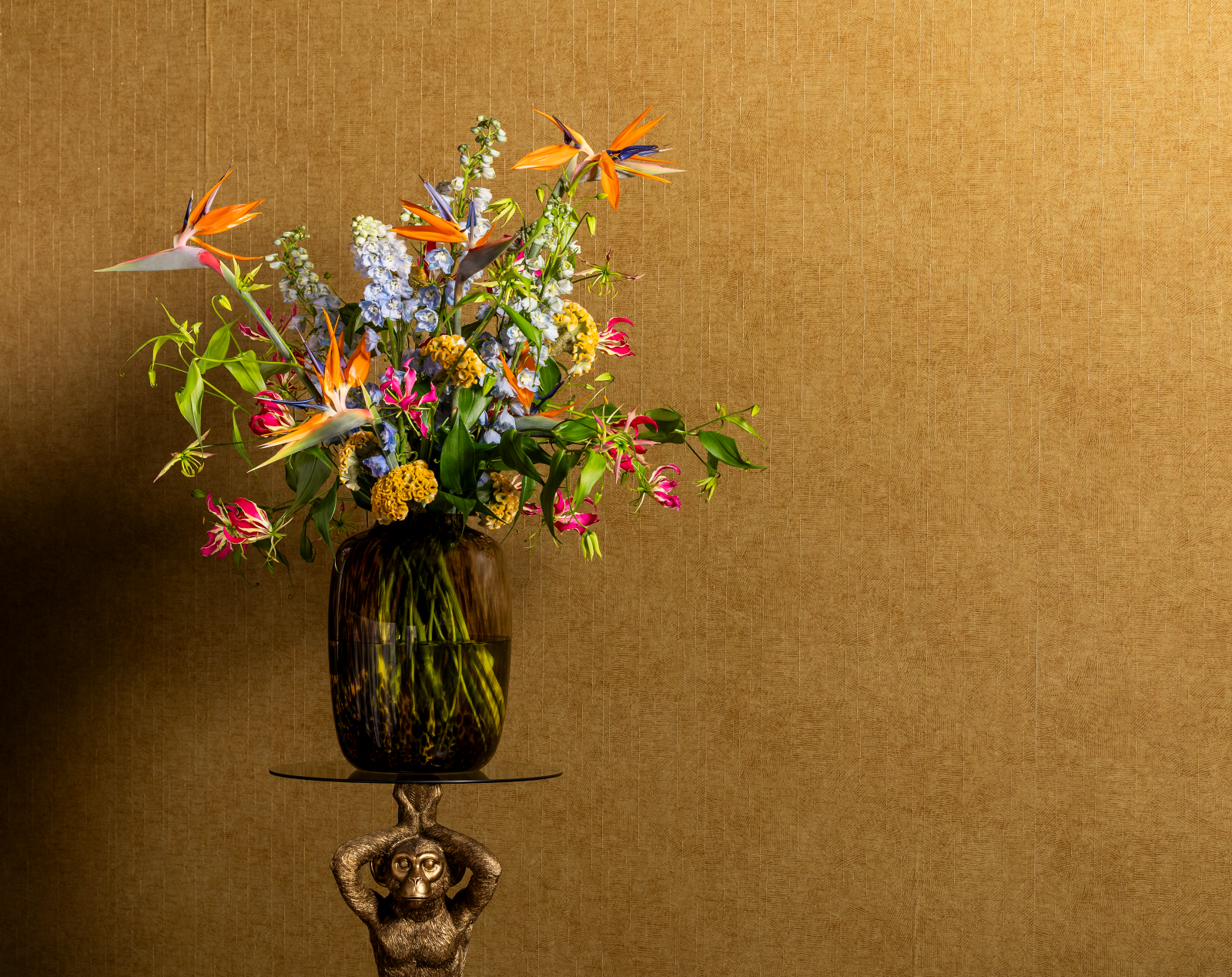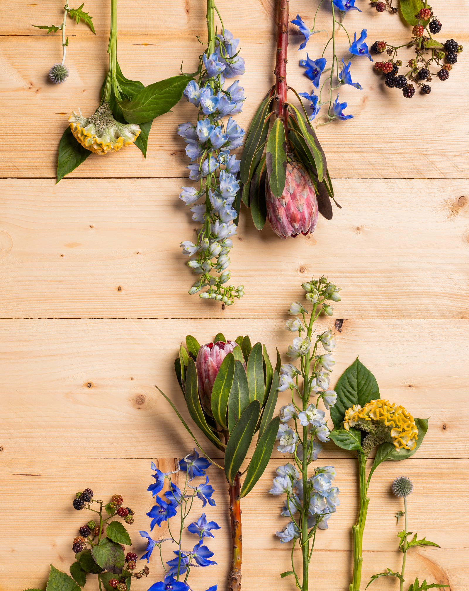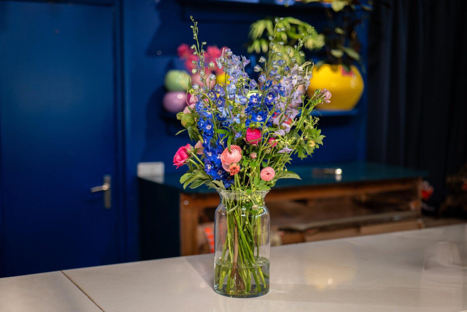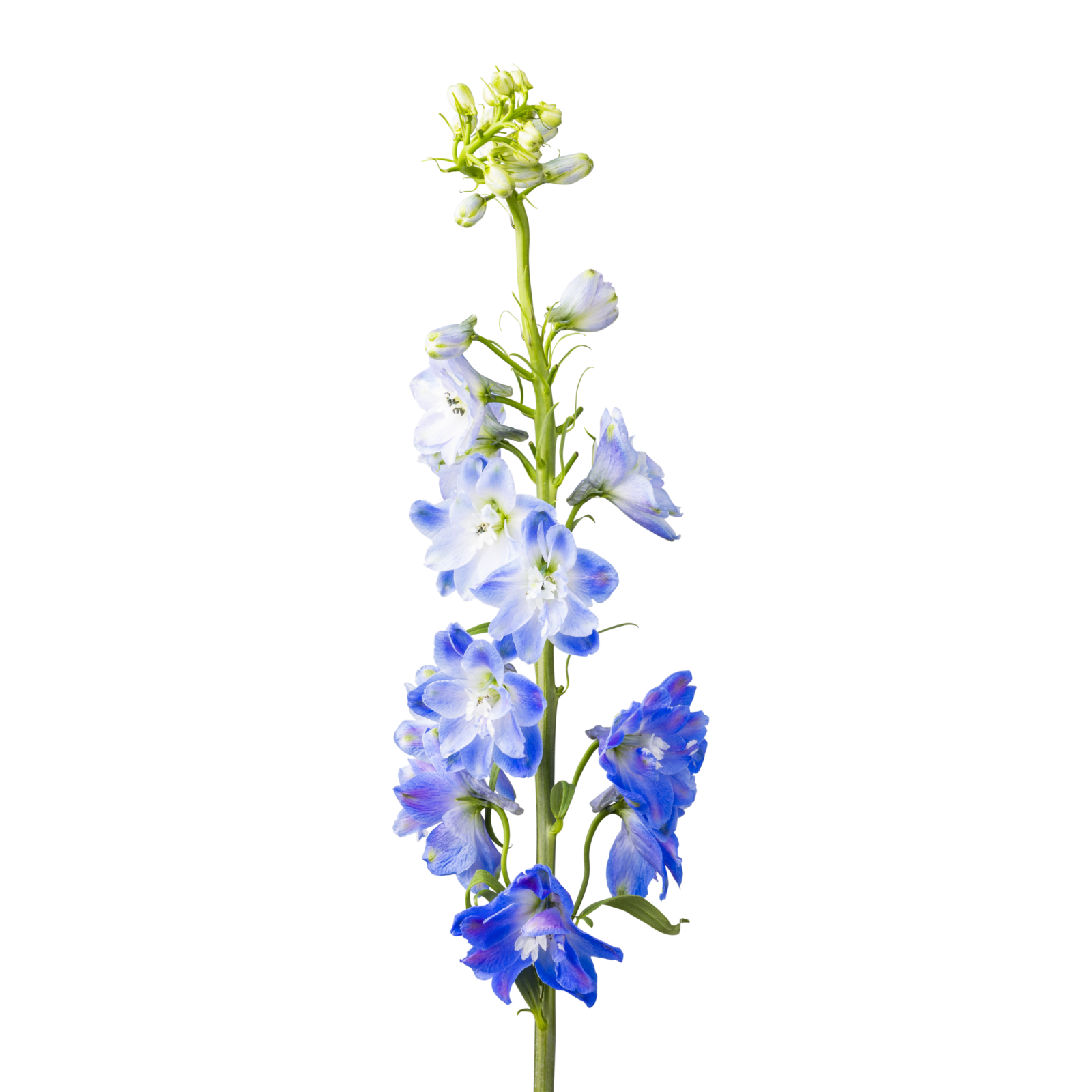 Con i suoi steli alti e sottili e i densi grappoli di fiori, il Delphinium aggiunge raffinatezza a qualsiasi composizione. Questi fiori attirano l'attenzione con i loro colori blu brillante in un bouquet.