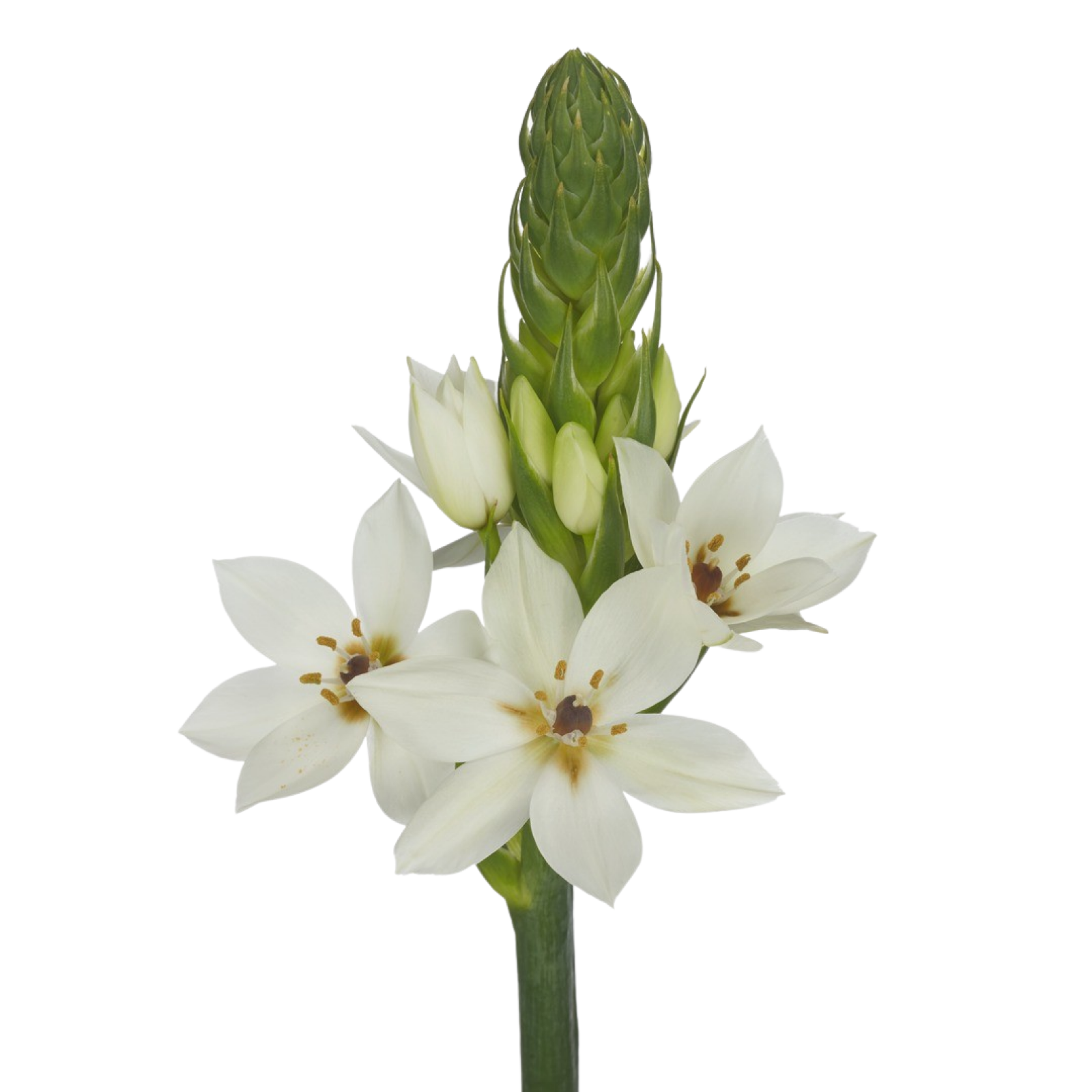 L'Ornithogalum cresce a forma di piramide e si trova in arancione e giallo, oltre che in bianco. ha sei petali con un cuore verde al centro. La forma del fiore ricorda un nido d'uccello. L'Ornithogalum Saundersiae ha steli lunghi. I fiori bianchi a forma di stella emergono dal bocciolo e si aprono gradualmente.