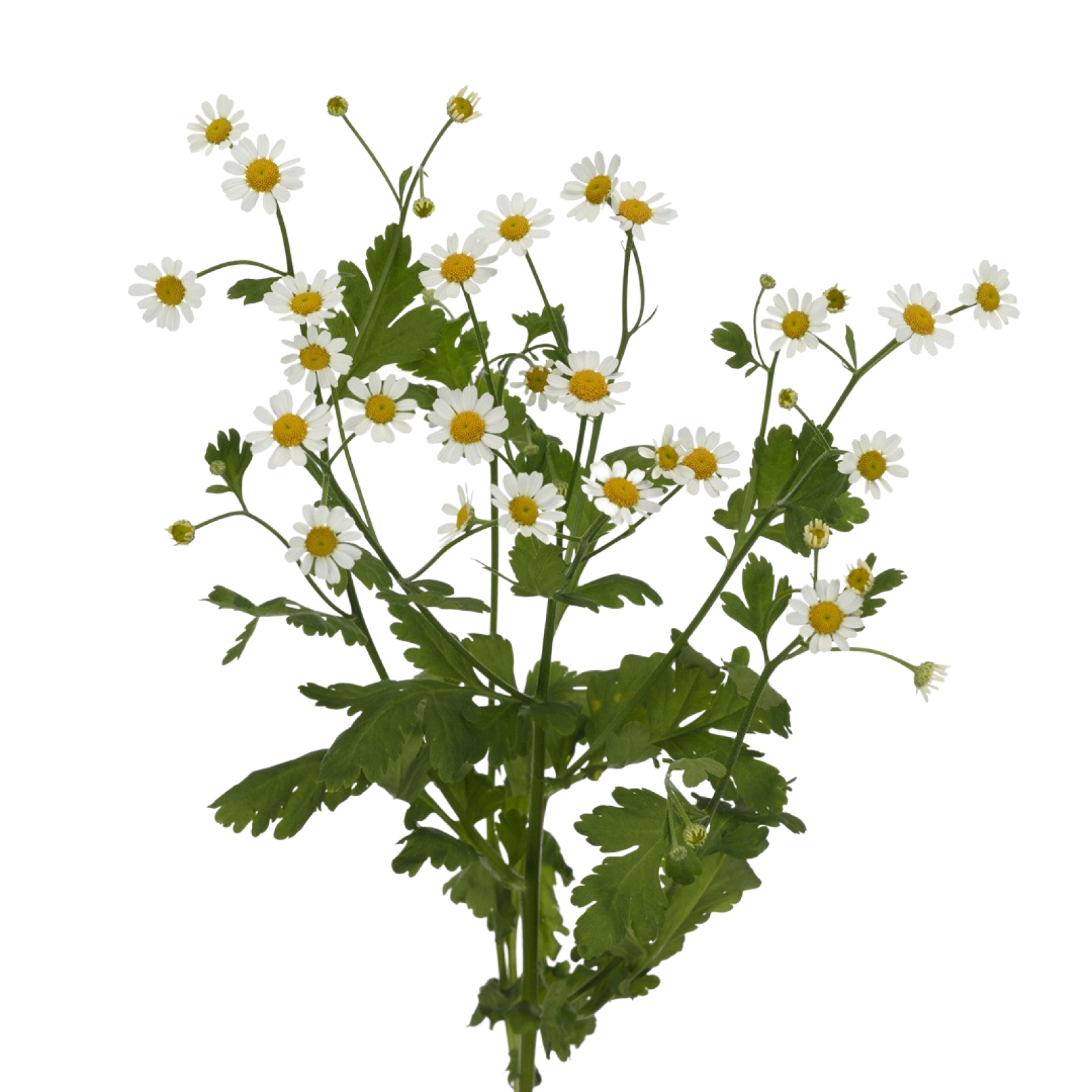 Il Tanacetum parthenium, con fiori dal cuore giallo circondato da petali bianchi, è chiamato Motherwort nei Paesi Bassi. Il Tanacetum parthenium ha diverse cultivar in varie tonalità di giallo.