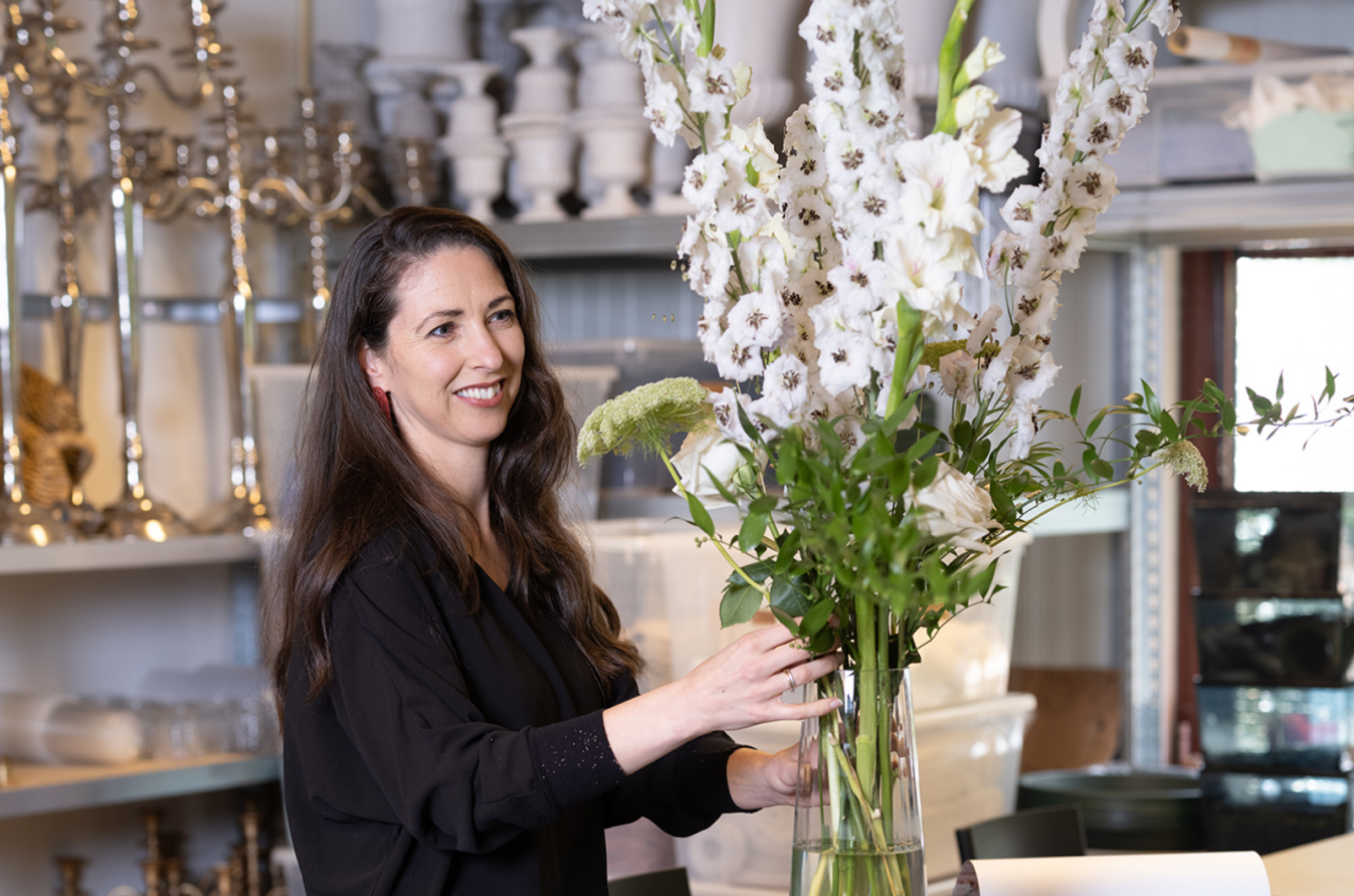 "Il primo incontro con i miei sposi avviene comunque faccia a faccia. Beviamo un tè da un bicchiere di vino e chiacchieriamo in modo informale sull'aspetto e l'atmosfera del grande giorno. Da lì, faccio un'offerta. Se uno di loro non è dei Paesi Bassi, chiedo sempre la provenienza. Mi piace incorporare i fiori del paese d'origine nel tema del matrimonio. Questo è sempre molto apprezzato. Chiedo anche quali sono i fiori preferiti dei membri della famiglia; anche loro possono avere un ruolo importante in questo giorno. Spesso visito i coltivatori per raccontare al cliente la storia del fiore e la sua origine. Alle spose e agli sposi questo piace sempre molto!