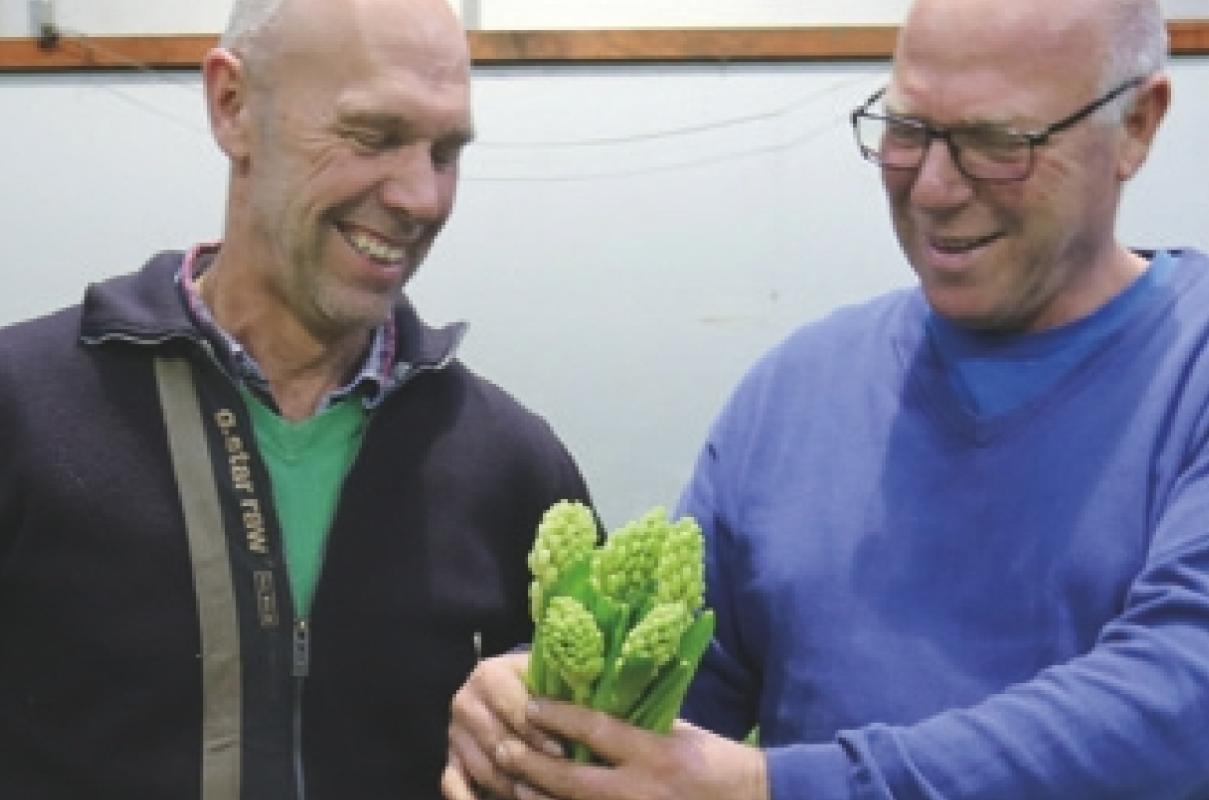 John e René van der Slot coltivano i loro giacinti in serre a rulli. La loro azienda agricola si trova proprio in riva al mare, nella regione dei bulbi, dove tradizionalmente si trovano molti coltivatori e coltivatori di bulbi. "Copriamo il terreno con uno strato di paglia", spiega John. "Questo funge da coperta isolante"